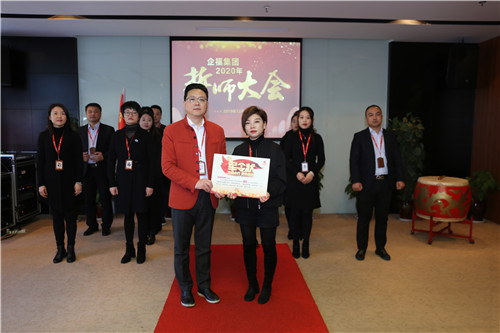 紧接着,企福集团总裁张建军为企福置业、园祥公司、企翔公司、企福物业分别颁发2020年军令状,再由各子公司总经理给每个团队颁发军令状。千斤重担众人挑,人人头上有指标。2020年的年度目标从公司、团队,具体落实到每一个人。
