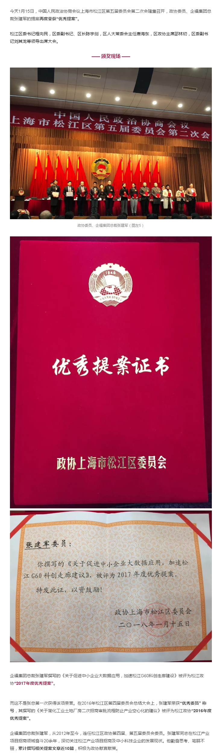 松江区政协委员、企福集团总裁张建军的提案再度获评“优秀提案”