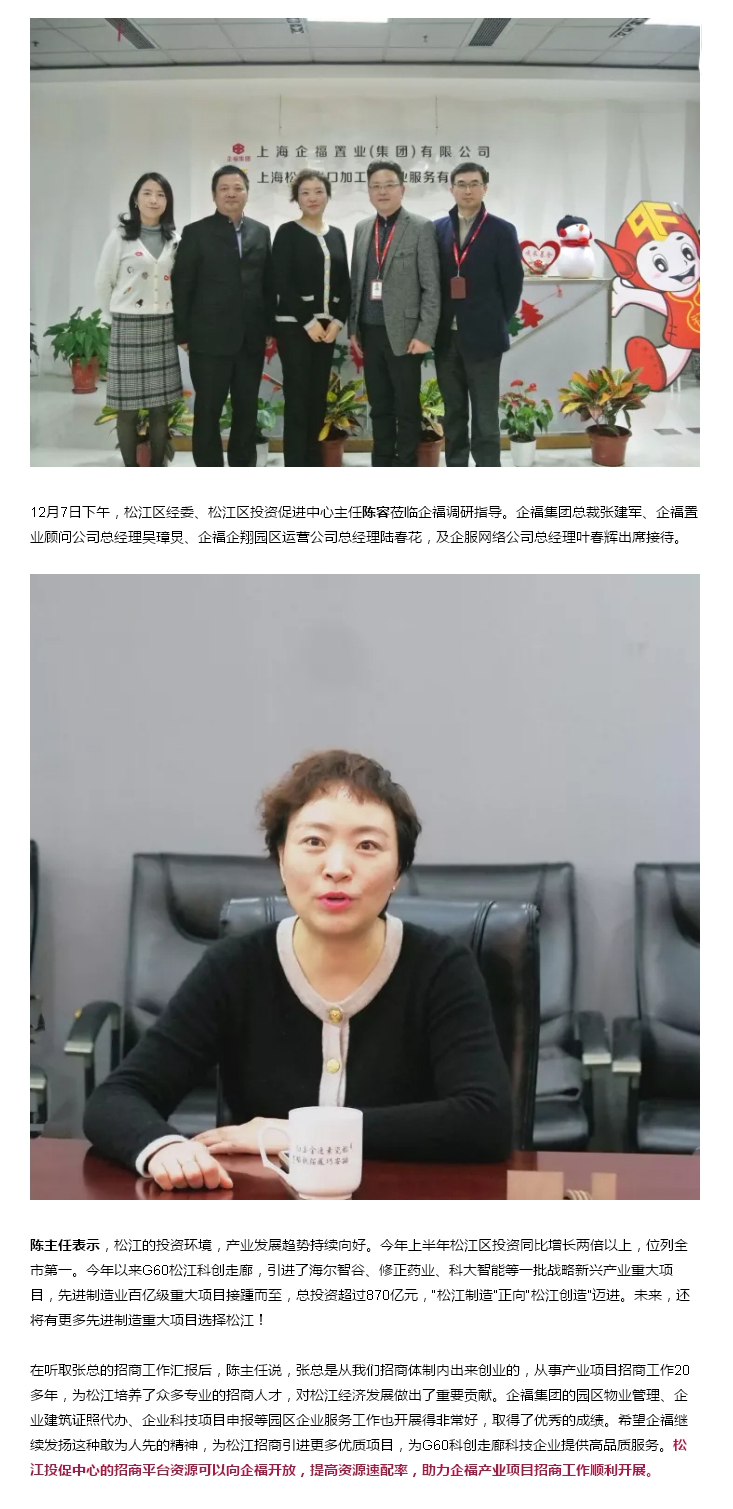 松江区投资促进中心主任陈容莅临企福集团调研指导
