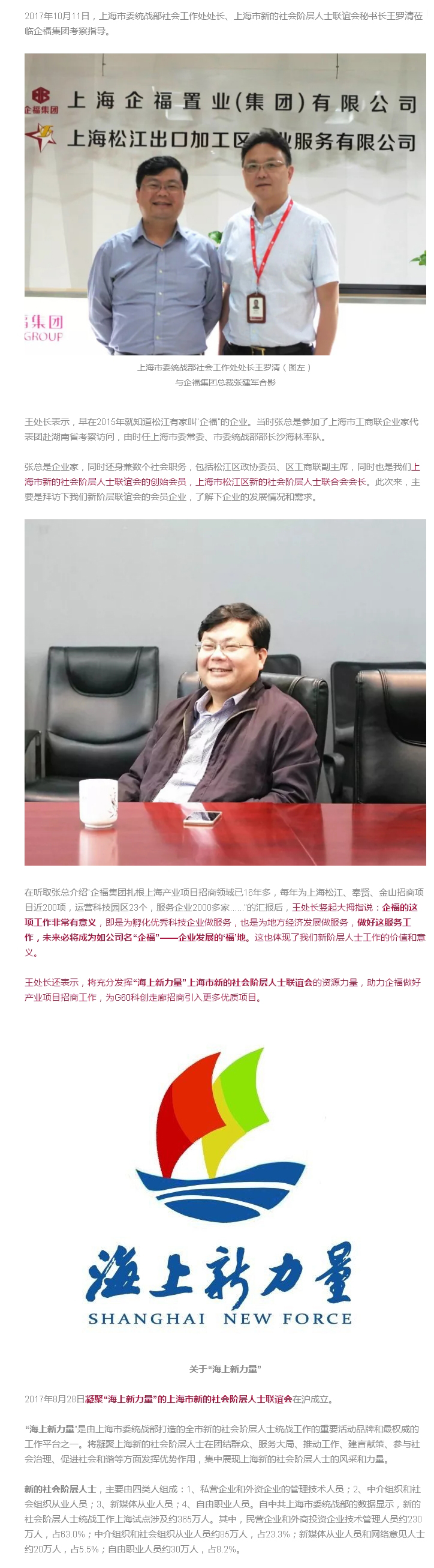 上海市委统战部社会工作处处长王罗清莅临企福集团考察指导