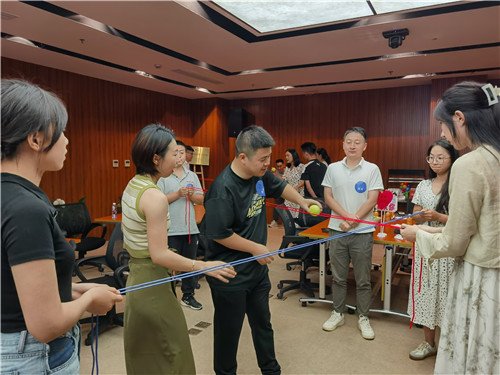 青年男女们在游戏配合中