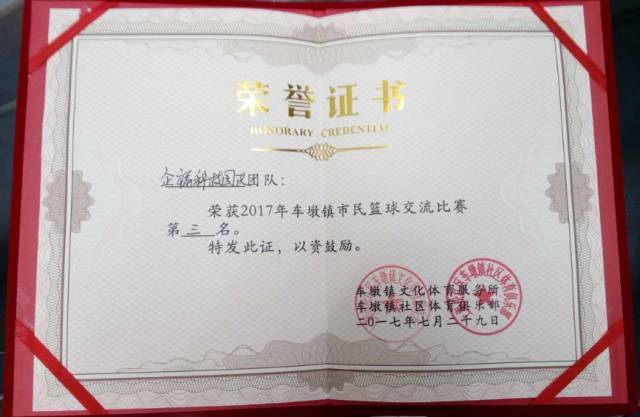 2017.7“企福科技园篮球队”荣获车墩镇篮球交流赛季军
