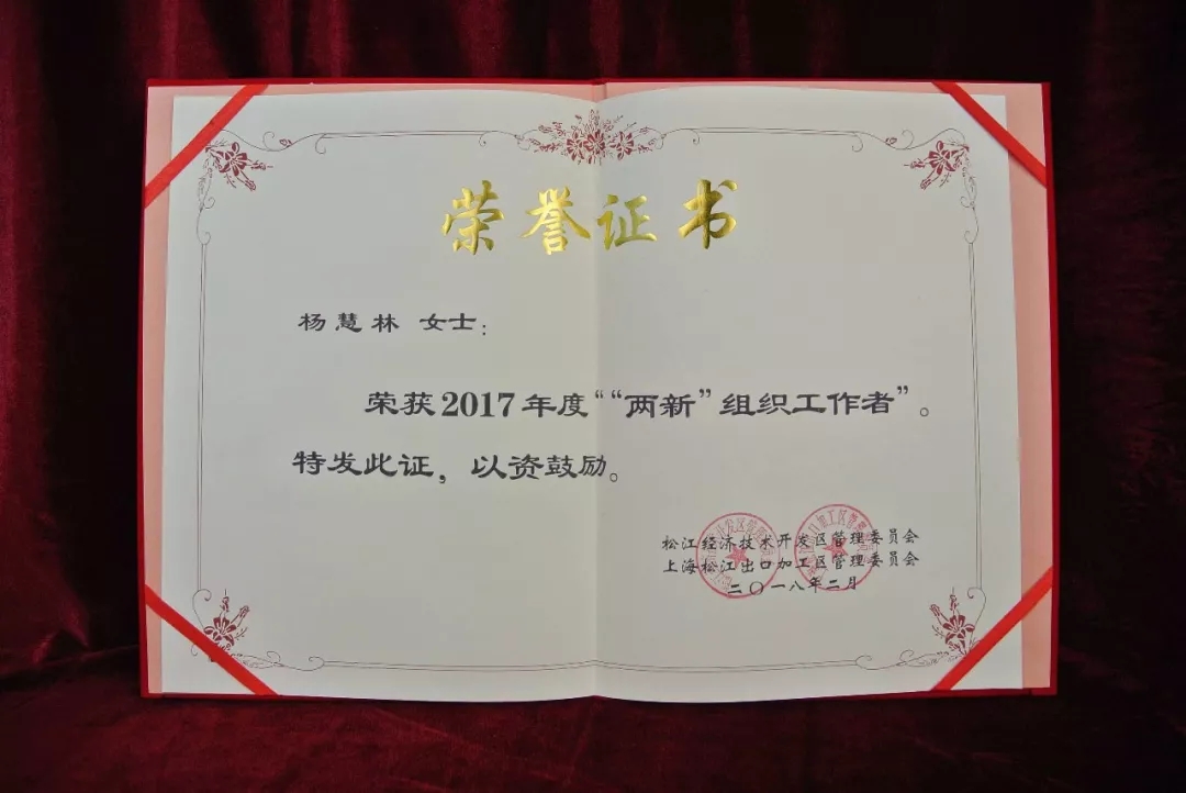 2018.2企福天地党支部书记杨慧林获经开区“先进个人”表彰