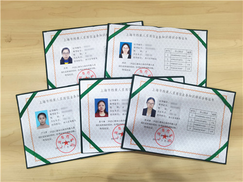 企福·园祥5人获上海市档案人员岗位业务知识培训合格证书